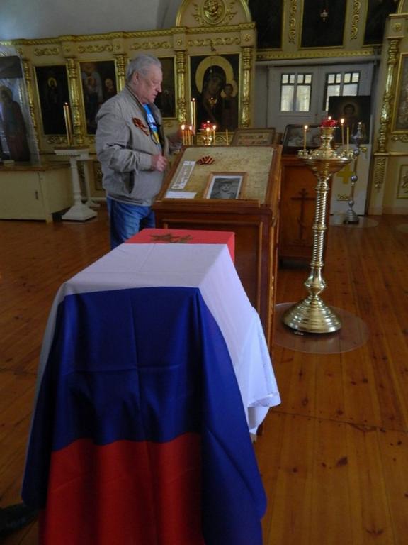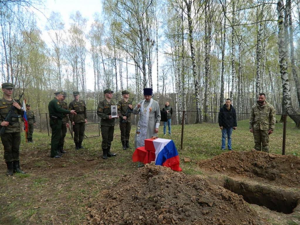 После отпевания останки бойца перевезли в село Микряково. Здесь у мемориала воинам, погибшим за Родину в годы Великой Отечественной войны, состоялся торжественный митинг, который провели военный комиссар Горномарийского и Юринского районов Владимир Васильев и настоятель Никольского храма села Микряково протоиерей Александр Лукьянов. Прах воина-героя был предан земле с соблюдением воинских почестей и православных традиций.