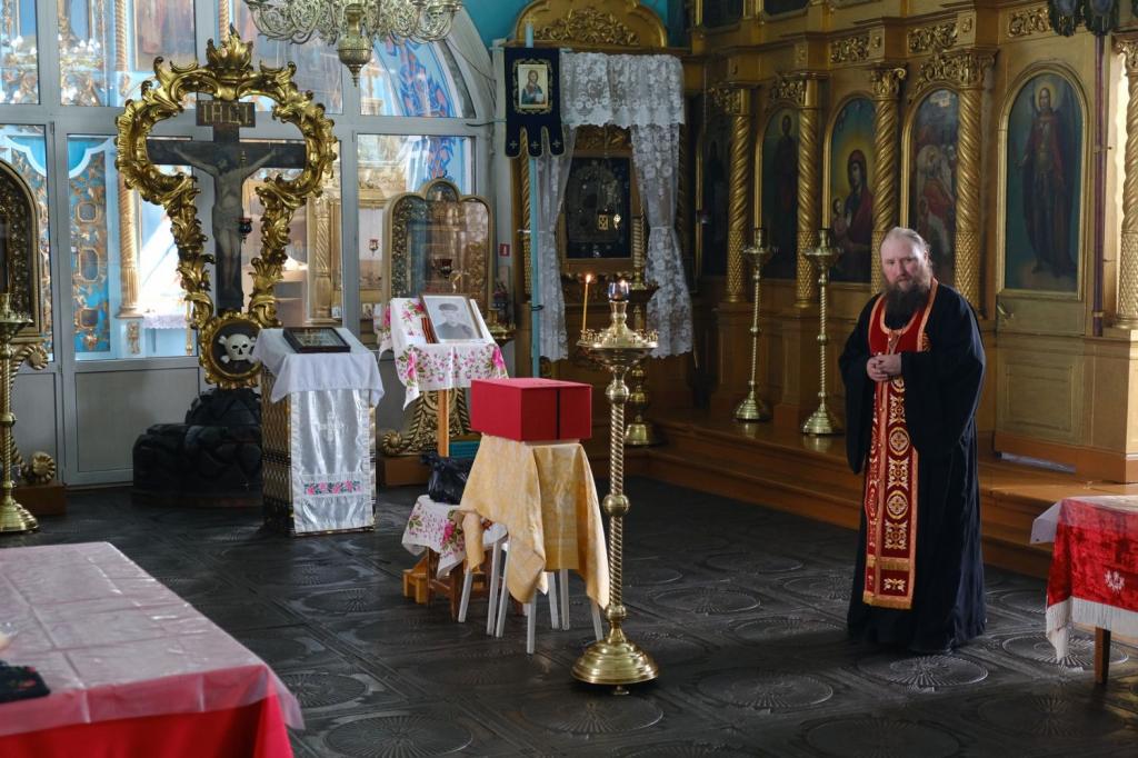 Прах воина доставили в Марий Эл, где его встретил настоятель храма Владимирской иконы Божией Матери с. Владимирское Горномарийского района иерей Алексий Васюткин.