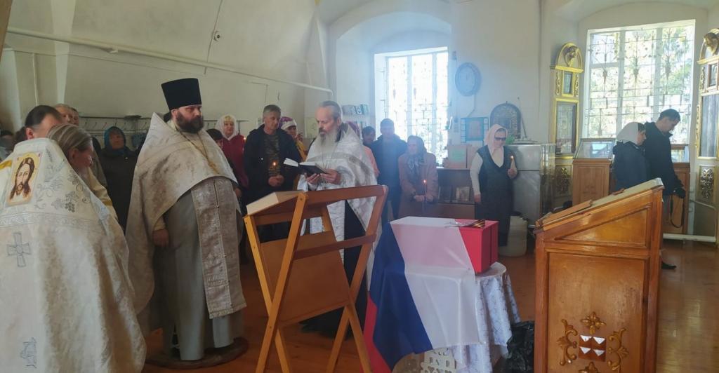 В храме Рождества Пресвятой Богородицы, состоялось отпевание воина Николая. Богослужение возглавил благочинный Горномарийского церковного округа протоиерей Алексий Сущев в сослужении архимандрита Иоанна Барсукова и иерея Василия Решетникова.