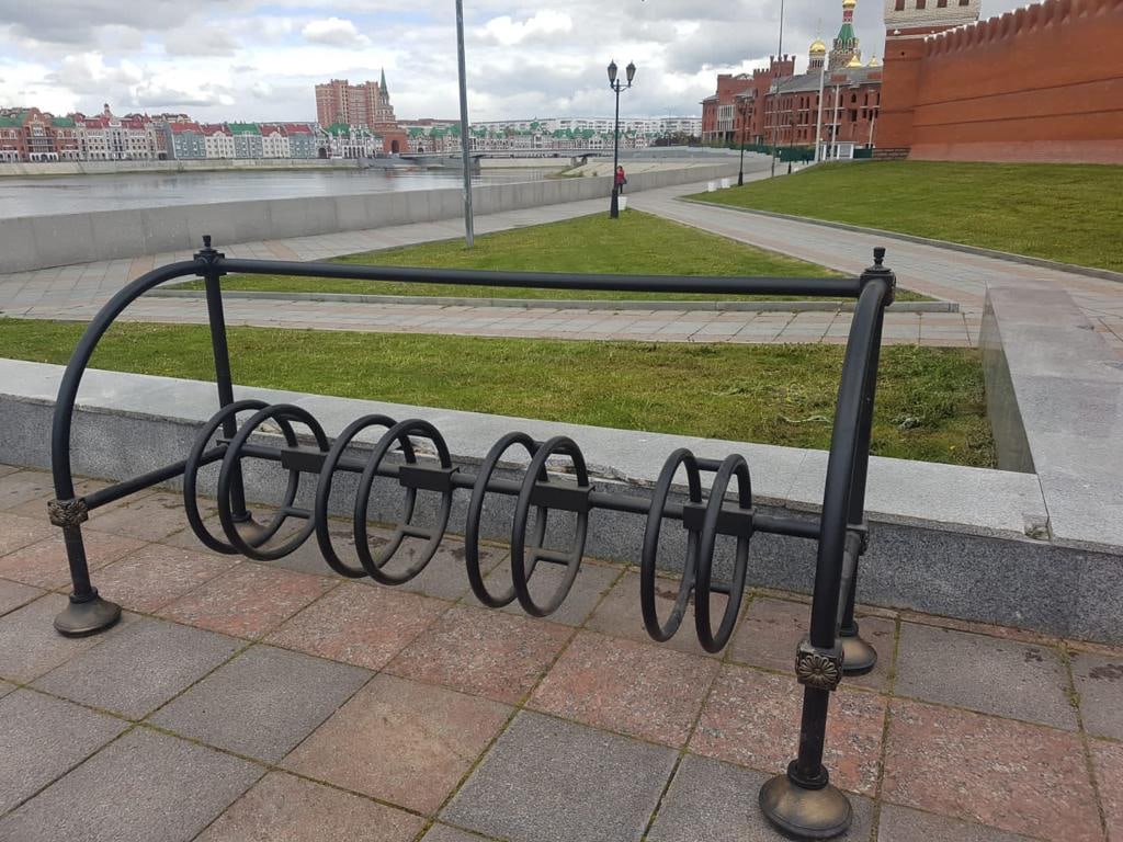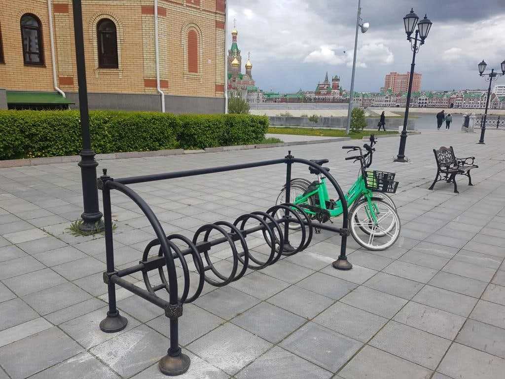 Здесь уже установили велопарковки и приступили к сборке пергол (тканевых навесов).