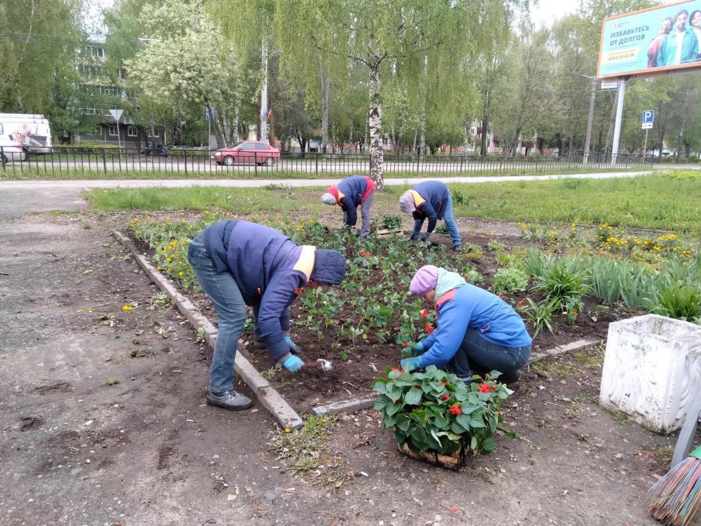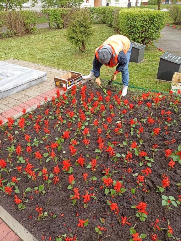 Сегодня цветы высаживают в скверах Интеграла и Машиностроителей, где территорию украсила ярко-красная сальвия.