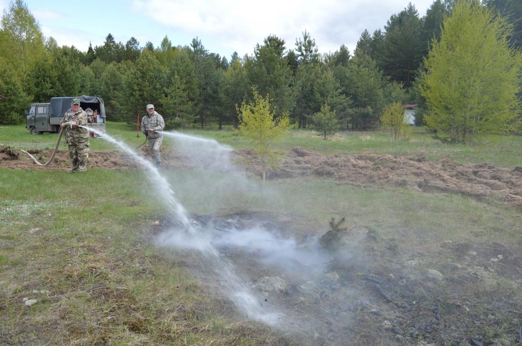 Огнеборцы отрабатывали прокладку минерализованных полос, забор воды из источников с помощью переносных мотопомп, прокладку рукавной линии, тушение кромки природного травяного пожара методом забрасывания грунтом вручную, при помощи ранцевых огнетушителей.