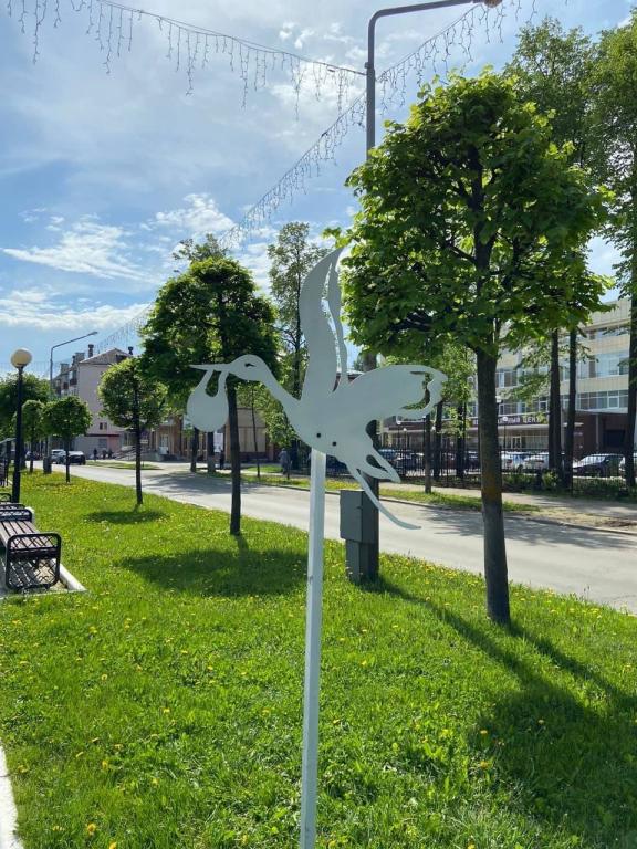 Так, месяц назад сотрудники МУП «Город» установили композицию из двух аистов на одном из цветников бульвара Победы. Клумба расположена напротив Перинатального центра