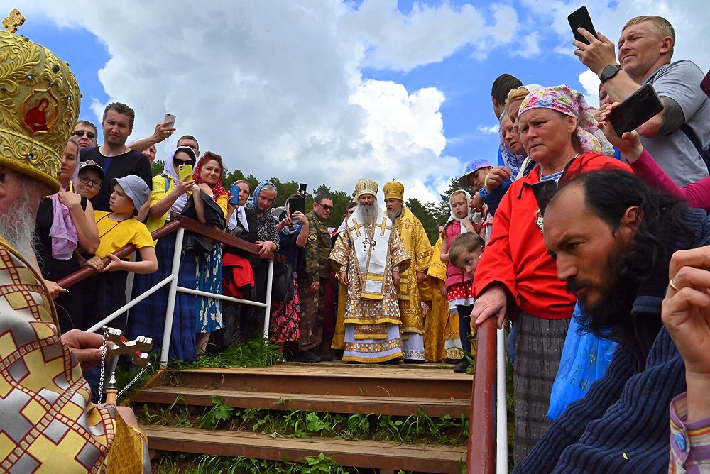 После окончания Божественной литургии архипастыри совершили чин освящения воды реки Великой, купели и источника, на котором в четырнадцатом веке был обретен Великорецкий образ святителя Николая.