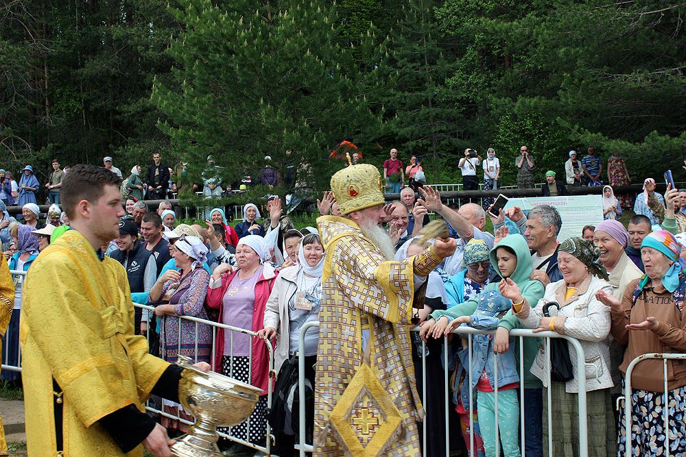 6 июня на берегу реки Великой в Кировской области — на месте обретения чудотворного Великорецкого образа святителя Николая, состоялась Божественная литургия. Литургию возглавили четыре архиерея: митрополит Вятский и Слободской Марк, митрополит Йошкар-Олинский и Марийский Иоанн, епископ Яранский и Лузский Паисий и епископ Уржумский и Омутнинский Иоанн.