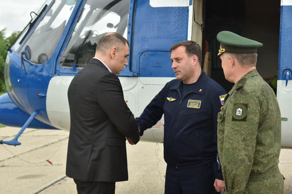 Юрий Зайцев с пожарными на вертолёте облетел территорию Медведевского района