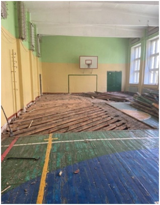 Пока школьники на каникулах, в школе № 16 в Йошкар-Оле приступили к ремонту покрытия спортзала.