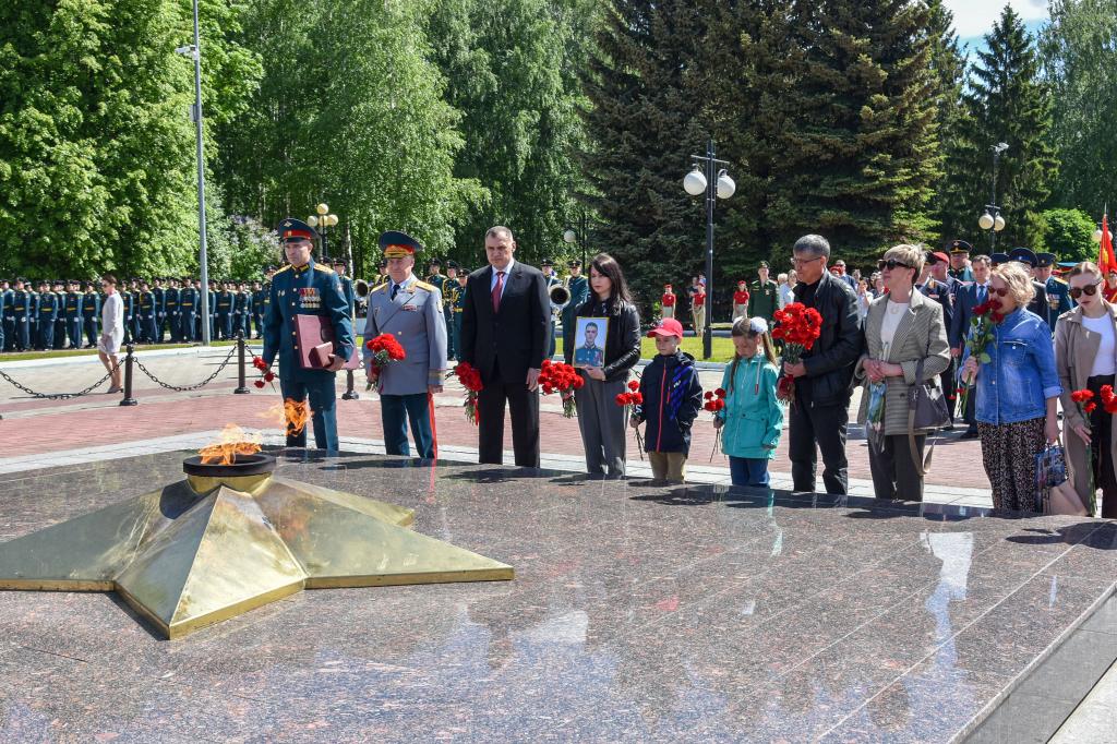 Церемония завершилась возложением цветов к Вечному Огню и торжественным маршем военнослужащих.