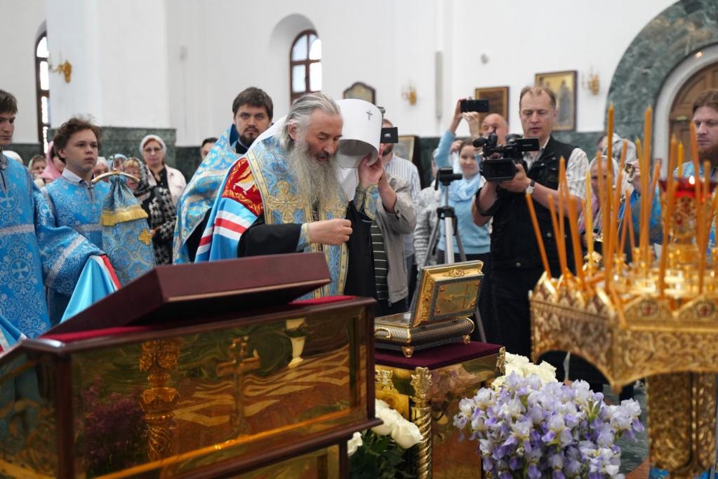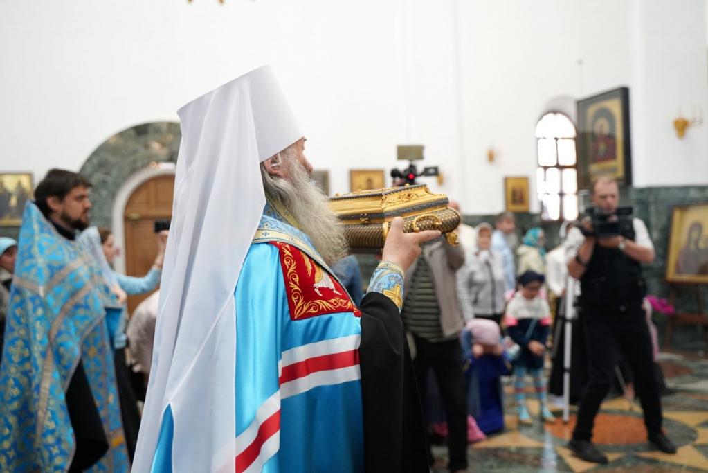 В Благовещенском кафедральном соборе святыню встретил митрополит Йошкар-Олинский и Марийский Иоанн. Владыка возглавил молебен Пресвятой Богородице. Владыке сослужили клирики кафедрального собора, руководитель молодёжного отдела Йошкар-Олинской епархии иерей Никита Иванов и протодиакон Михаил Козловский.