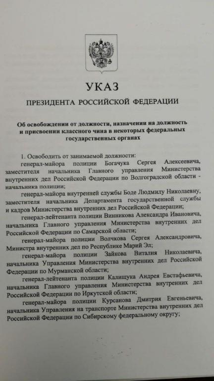 Решение об увольнении принято Президентом РФ Владимиром Путиным.