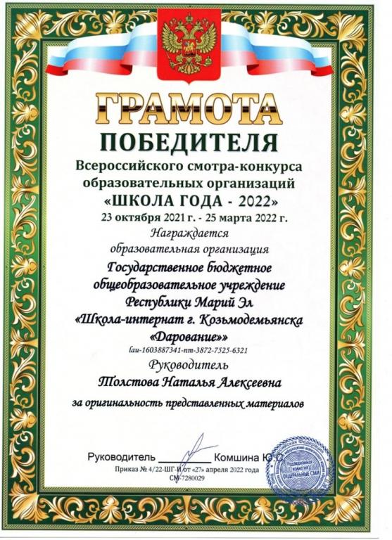 Подведены и опубликованы итоги Всероссийского смотра-конкурса образовательных организаций «Школа года — 2022», организатором которого является Редакционная коллегия Издательского дома «Федеральные СМИ РФ».