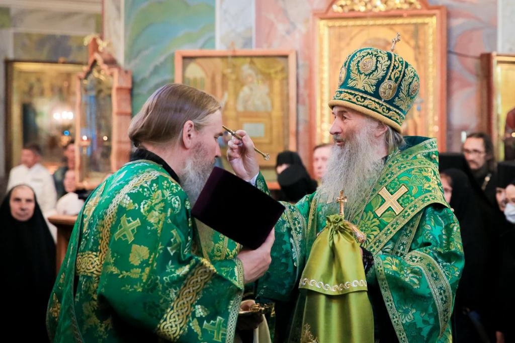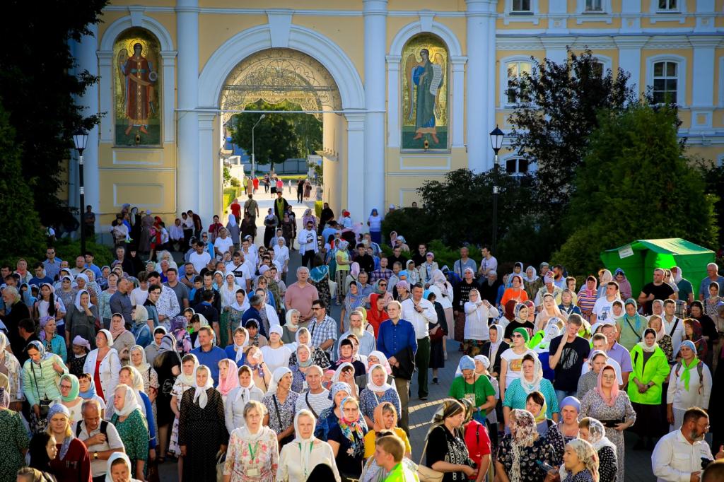Для паломников и прихожан велась трансляция богослужения на экраны, установленные на территории обители.