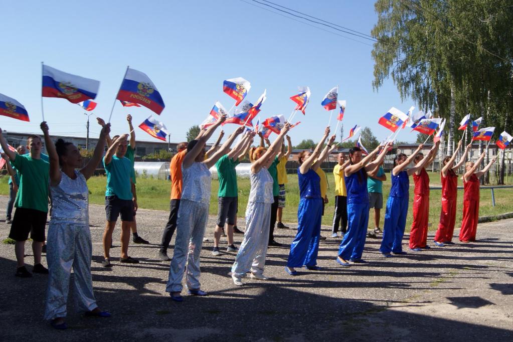 Очень насыщенная праздничная программа была и в самой колонии-поселении №7. Были организованы съёмки патриотического видеоролика «Россия-матушка». В нём участвовали более 50 человек – и осужденные, и сотрудники учреждения. Песню исполнила осужденная Татьяна Мишина, а в организации антуража помог кружок конструирования сценического костюма, подготовивший специальные наряды в гамме триколора.
