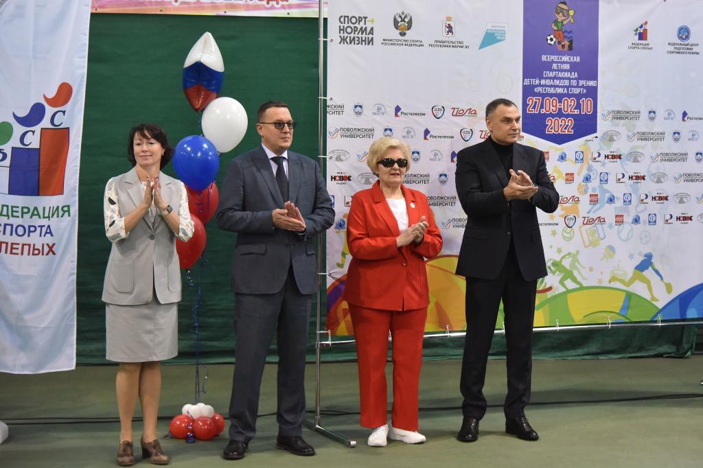 Сегодня на теннисном корте стадиона «Дружба» в Йошкар-Оле состоялось тожественное открытие Всероссийской Спартакиады детей-инвалидов по зрению «Республика спорт». В масштабных соревнованиях принимают участие 540 человек — спортсменов и тренеров со всей России. На открытии присутствовал Юрий Зайцев. Глава Марий Эл поприветствовал участников Спартакиады, пожелал всем удачных стартов и положительных эмоций.