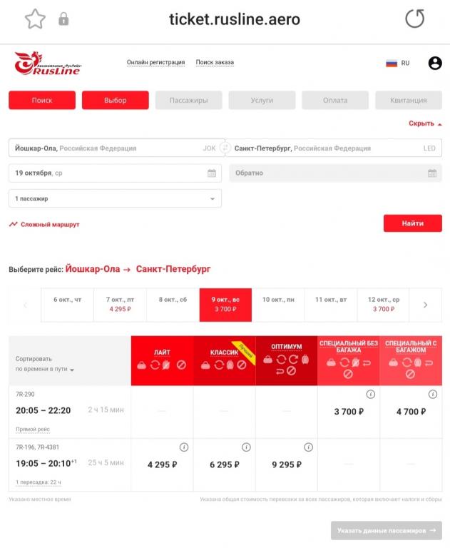 В октябре снизилась стоимость авиаперелётов между Йошкар-Олой и Санкт-Петербурго...