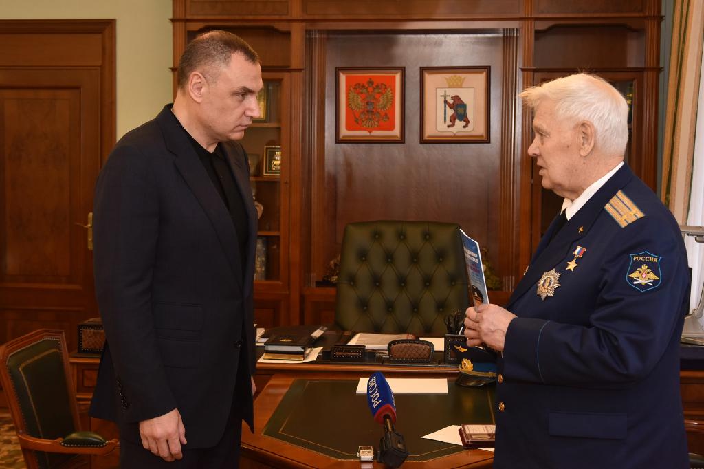 Глава республики Юрий Зайцев накануне встретился с советским и российским лётчиком, подполковником в отставке, Героем Российской Федерации Владимиром Шарпатовым.