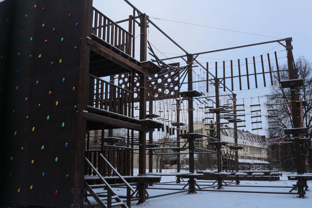 Например, сейчас здесь завершают установку спортивно-развлекательного комплекса «Верёвочный парк» со скалодромом. Уже проводится приёмка объекта от поставщика и проверка соответствия техническому заданию.