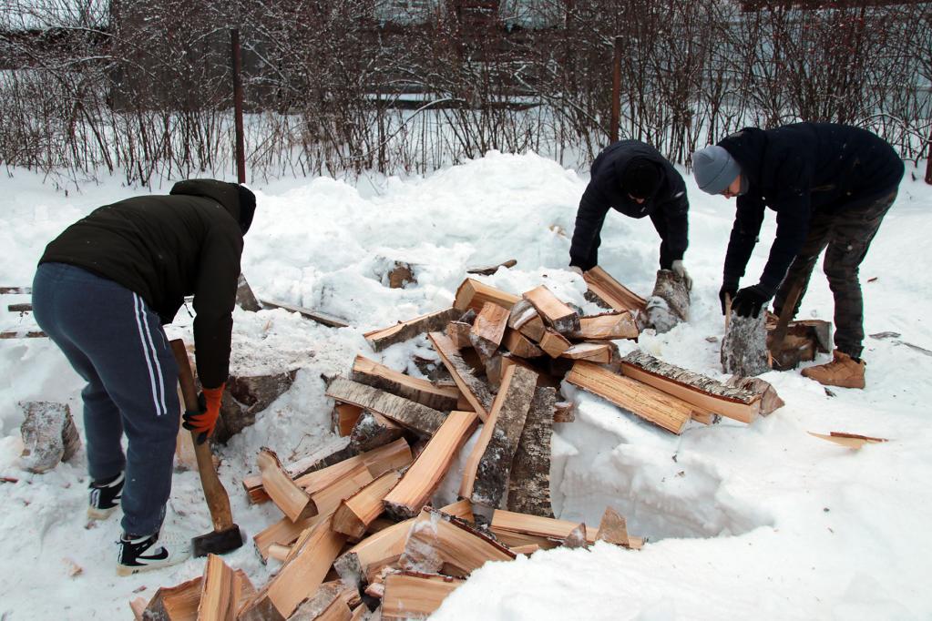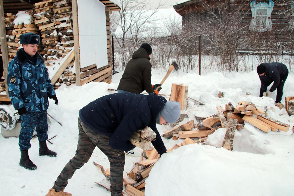 Начальник поделился идеей об оказании адресной помощи с осужденными исправительного центра. Там сейчас содержатся 52 человека. Помочь женщине с заготовкой дров вызвались четверо мужчин. Они написали заявления о выходе за пределы учреждения, которые, конечно, были тут же удовлетворены. Желающих, в принципе, было больше, но и предполагаемый объём работы был не слишком велик.