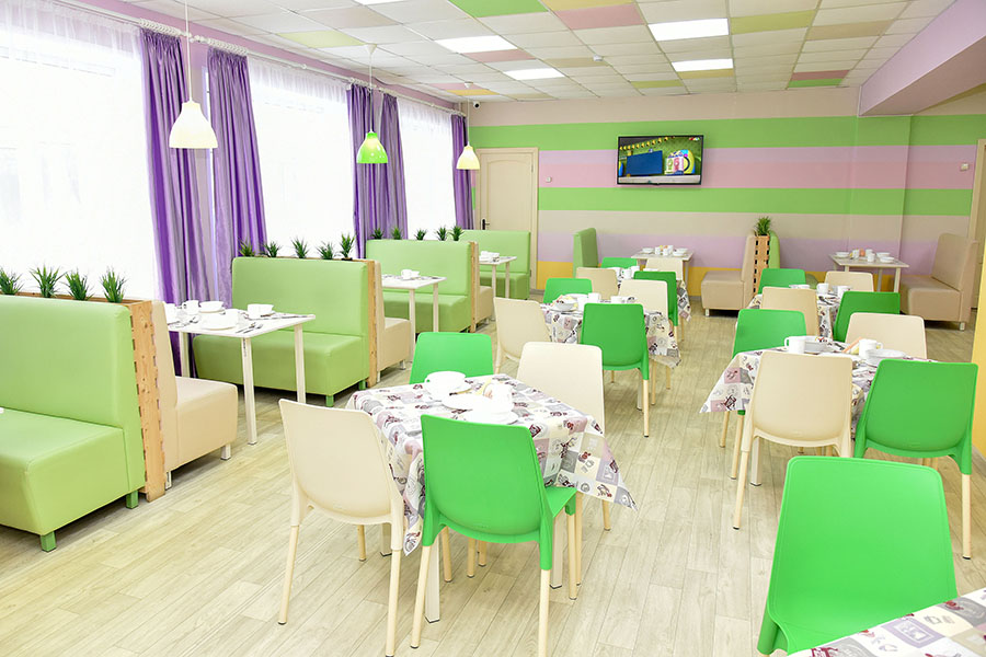В частности, столовая преобразилась в яркое детское кафе и была оснащена современным кухонным оборудованием. Проведён ремонт спортивно-игрового зала, который разделён на зоны: игровую, спортивную, реабилитационную, зону релаксации, приобретено игровое развивающее оборудование. Также капитально отремонтировано отделение социально-медицинской реабилитации.