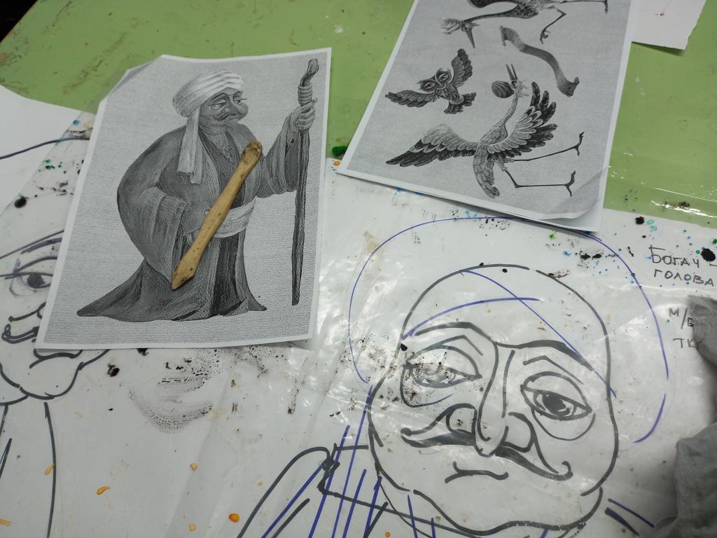 И хоть покажут восточную сказку по произведению В. Гауфа только летом, в цехах к ней уже готовятся. Сейчас здесь началась работа над куклами: лепка формы головы из пластилина и заливка формы гипсом, скоро предстоит сделать папье-маше.