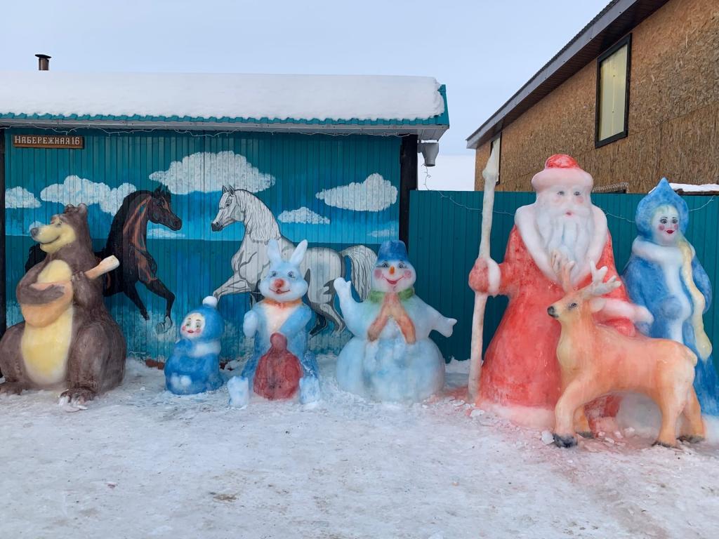 Вся эта большая компания сделана из снега семьёй Тымбаршевых. Ледяные фигуры перед своим домом они мастерят уже третий год, сообщает Минспорттуризма Марий Эл.