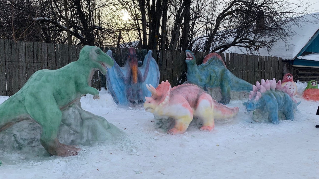 Несмотря на погодные аномалии, скульпторам хватило материала и нескольких морозных дней для того, чтобы создать по-настоящему внушительные композиции.