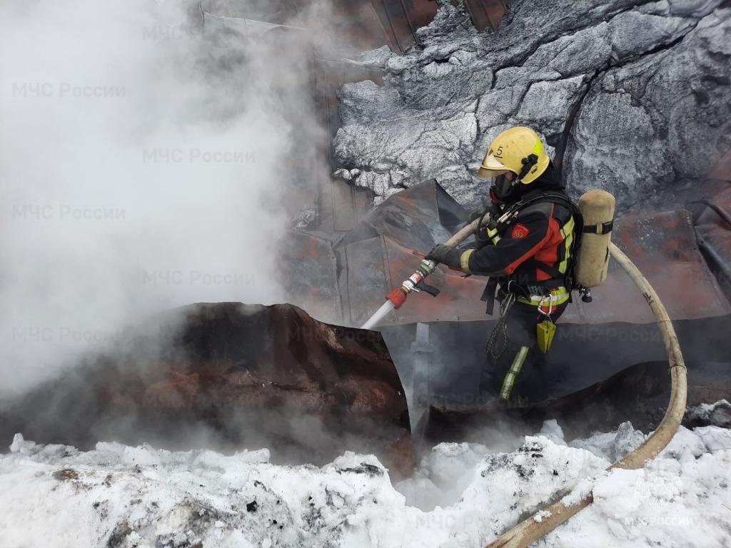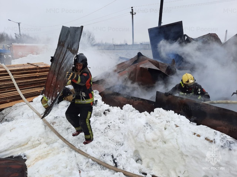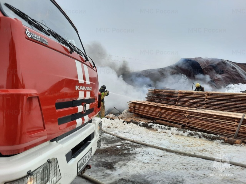 Накануне утром серьёзный пожар произошёл на складе стройматериалов на территории одного из предприятий в Медведево.