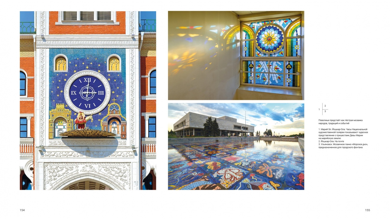 Что касается образа Поволжья, он раскрыт через многогранные впечатления. Это пейзажи, архитектурные зарисовки, портреты наших современников, остановленные мгновения жизни поволжских городов и сёл. Это главные достопримечательности, уникальные природные объекты, в том числе памятники Всемирного наследия ЮНЕСКО, достижения в технике, хозяйстве, искусстве, науке и спорте.