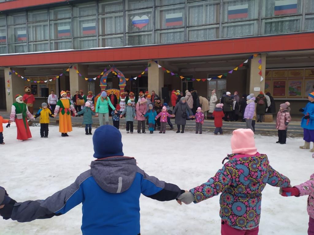 Гостей встретили радушные хозяева Оза (Хозяин), Оза вате (Хозяйка), Ӱярня курык кугыза (Хозяин масленичной горы) и Ӱярня кува (Хозяйка народных игр). Здесь можно было отведать национальной еды и поиграть в народные игры «маскайол» (медвежья лапа), «шӱшканъече» (лыжи-самоходы). В это же время для детей были организованы мастер-классы по приготовлению блинов.