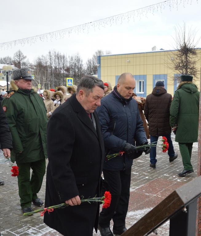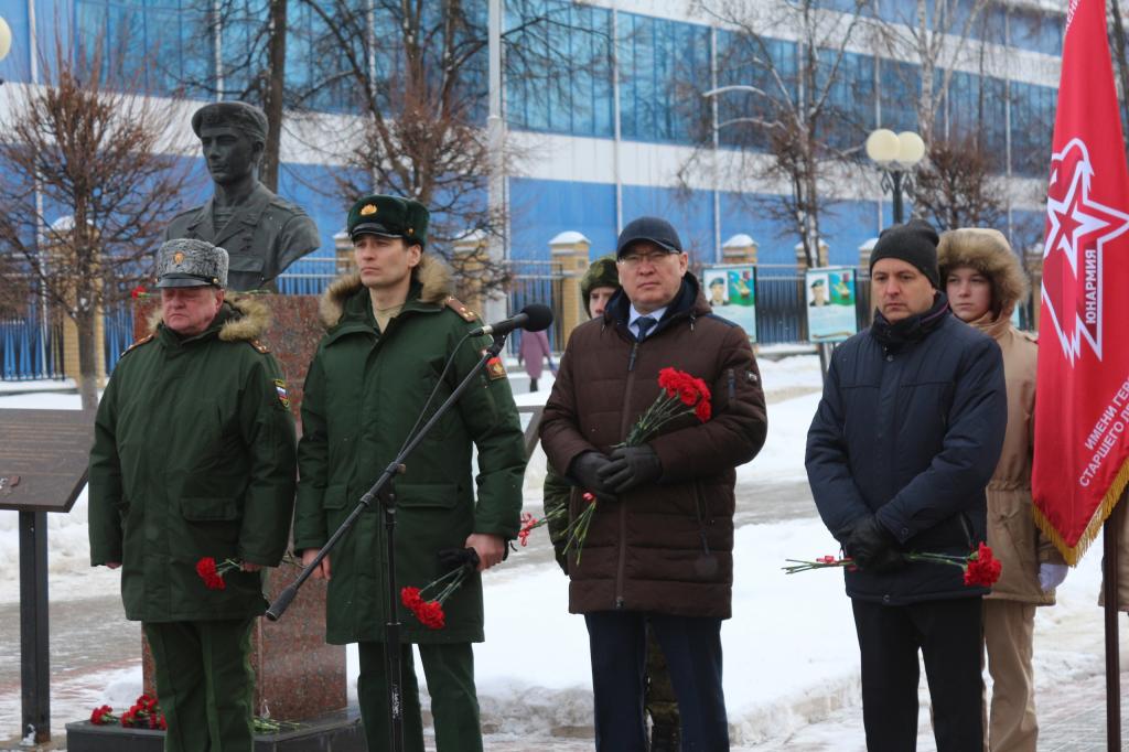 Участники почтили память погибших воинов минутой молчания и в знак благодарности, памяти и скорби возложили цветы к бюсту М.Н. Евтюхина.