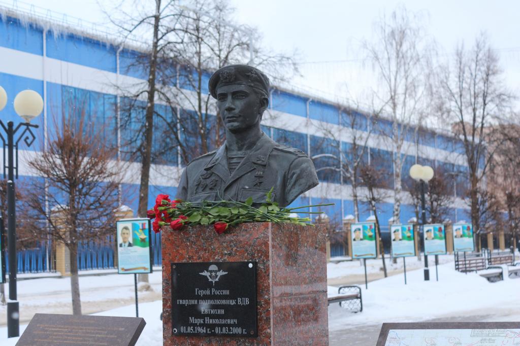 Сегодня в Йошкар-Оле у бюста Марку Евтюхину состоялась городская линейка памяти. Мероприятие было посвящено подвигу 6 парашютно-десантной роты 104 гвардейского полка 76 воздушно-десантной дивизии.