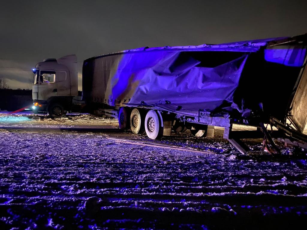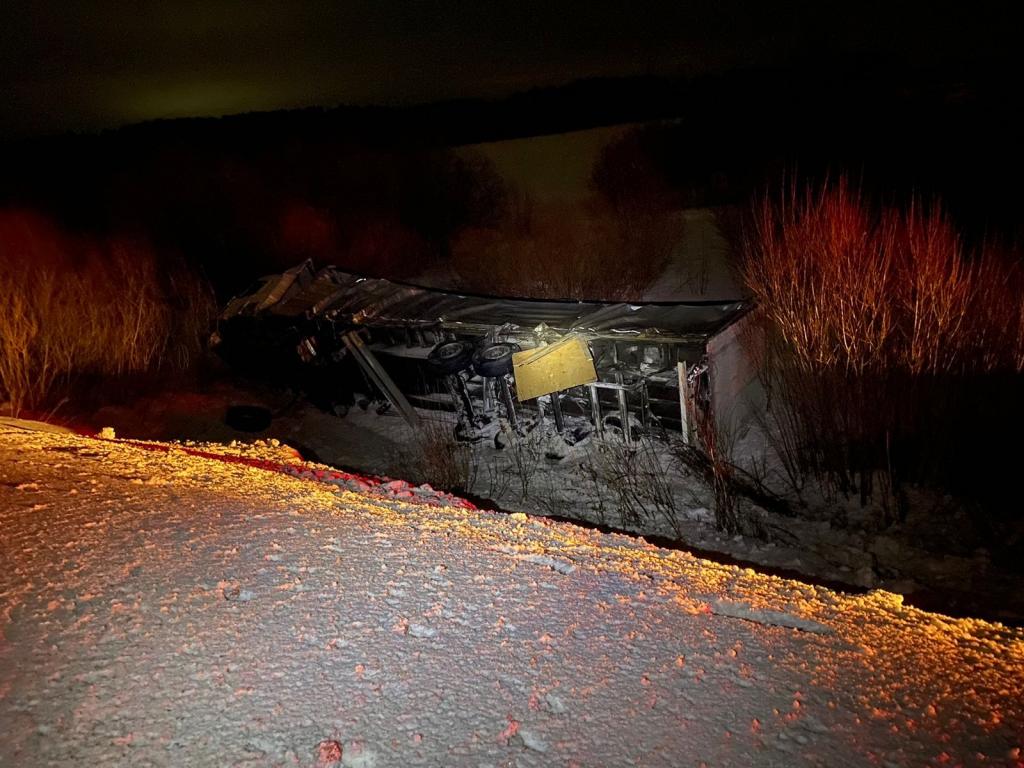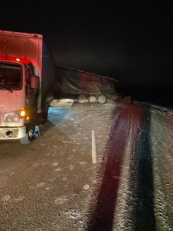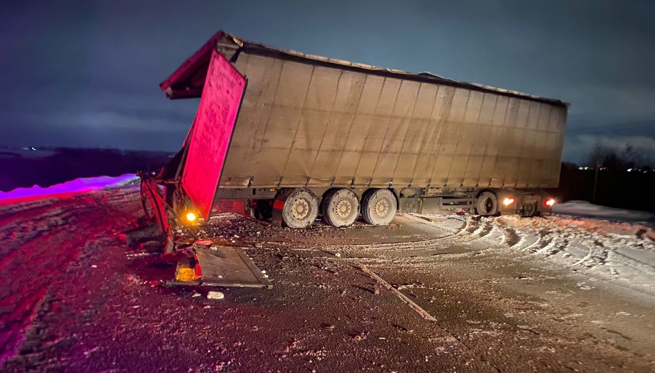 В субботу, 4 марта, около часу ночи на 45 км автодороги «Объездная г. Йошкар-Ола» Медведевского района произошло столкновение двух грузовых автомашин Scania с полуприцепами.