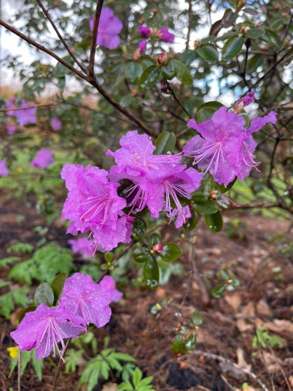 В Ботсаду в Йошкар-Оле расцвели рододендроны трёх сортов: Сихотинский, Ледебура, Даурский. В диком виде их можно встретить в горах Алтая, в Забайкалье, на Дальнем востоке нашей страны. Там их называют маральником и багульником.