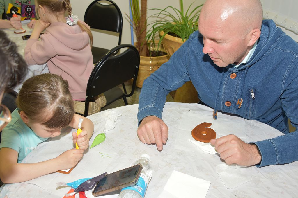 Под руководством наставника цветной глазурью были раскрашены сладкие подарки, которые при содействии фонда «Сердце матери» будут направлены в зону проведения СВО и переданы нашим бойцам.