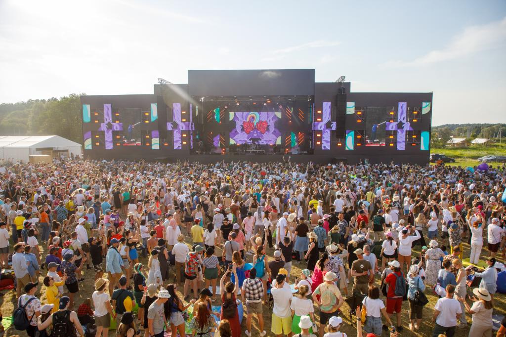 В этом году на фестивале были оборудованы две сцены с огромными экранами, детская сцена «Ариэль» и, напоминающая дачную беседку, «Веранда» с ламповым звуком.