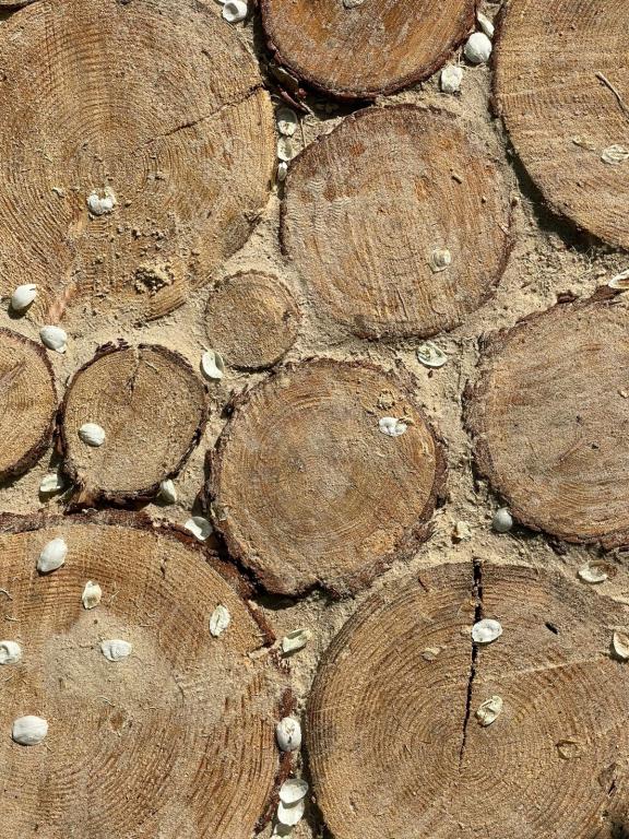 Благодаря такому решению, пространство сада обрело естественный и гармоничный вид. По вкопанным в землю чурбачкам приятно и интересно перемещаться, такое «покрытие» прекрасно вписывается в концепцию экспозиции, отмечают экологи.