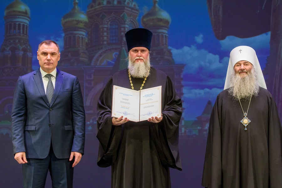 — Каждый из вас достоин благодарности, награды не просто государственной, а человеческой. Спасибо за ваш нелегкий труд, за то, что вы каждый день несете нам душевный покой, даете понимание истин, по которым строится наша жизнь. Всегда, когда наша Родина переживала тяжелые времена, священники становились в первых рядах защитников. И сейчас священники погибают, выполняя свой самый важный долг — поддержку воинов, которые на передовой защищают нашу Родину, — сказал Юрий Зайцев.