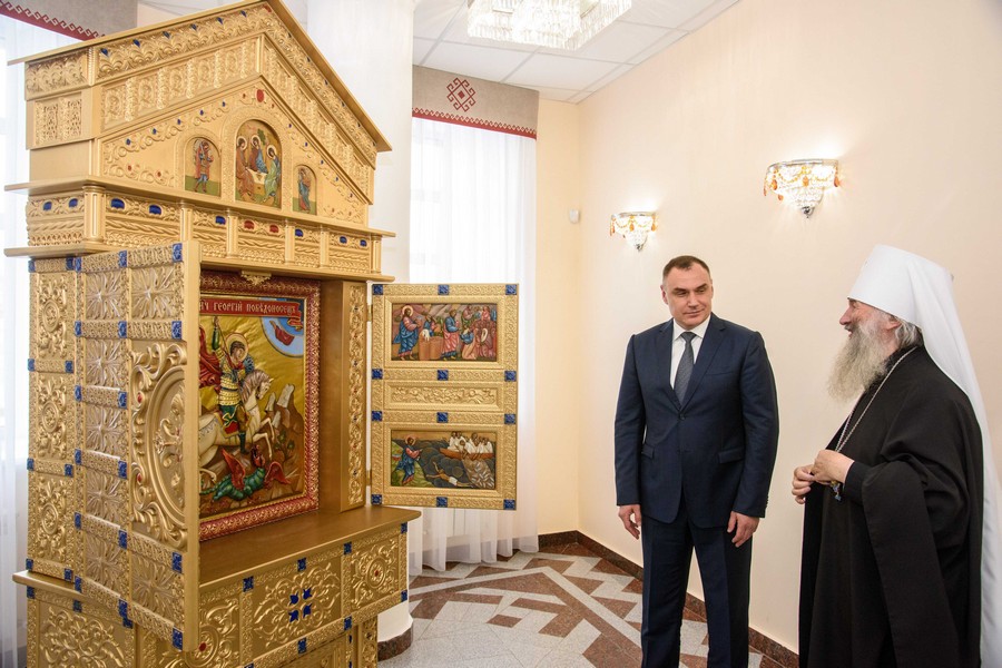 Глава Марий Эл поздравил Высокопреосвященство, архиереев и всех верующих с 30-летием Йошкар-Олинской и Марийской епархии, подарил киот, подчеркнул важнейшую роль церкви в сохранении православных традиций, подвижнической работы, реализации новых образовательных и социальных инициатив.