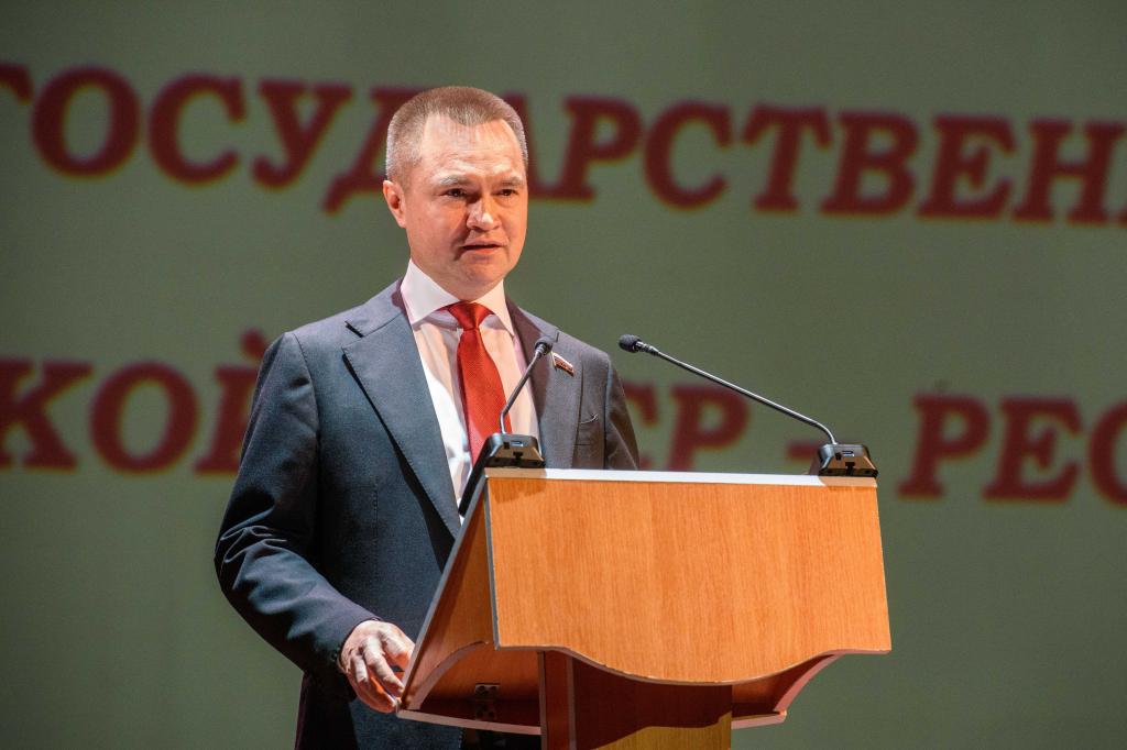 Заместитель председателя Совета Федерации, представитель от исполнительного органа государственной власти Республики Марий Эл Константин Косачёв зачитал поздравление председателя верхней палаты российского парламента Валентины Матвиенко.