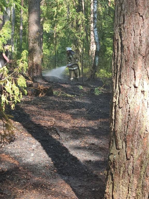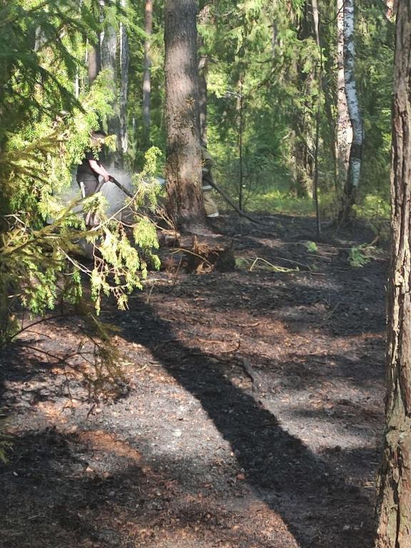 Прибывшим лесным пожарным — сотрудникам лесничества и арендатора оставалось завершить тушение и обезопасить участок, опахав его территорию. Площадь, пройденная огнём, составила 0,16 га.