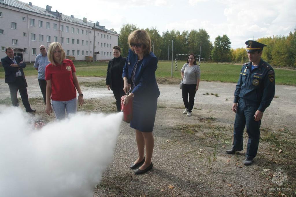 Специалисты ГУ МЧС РФ по Марий Эл на практике продемонстрировали учащимся работу первичных средств пожаротушения, а учителя попробовали самостоятельно применить огнетушитель.