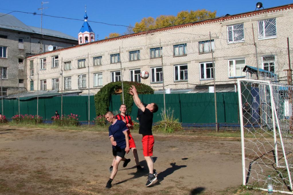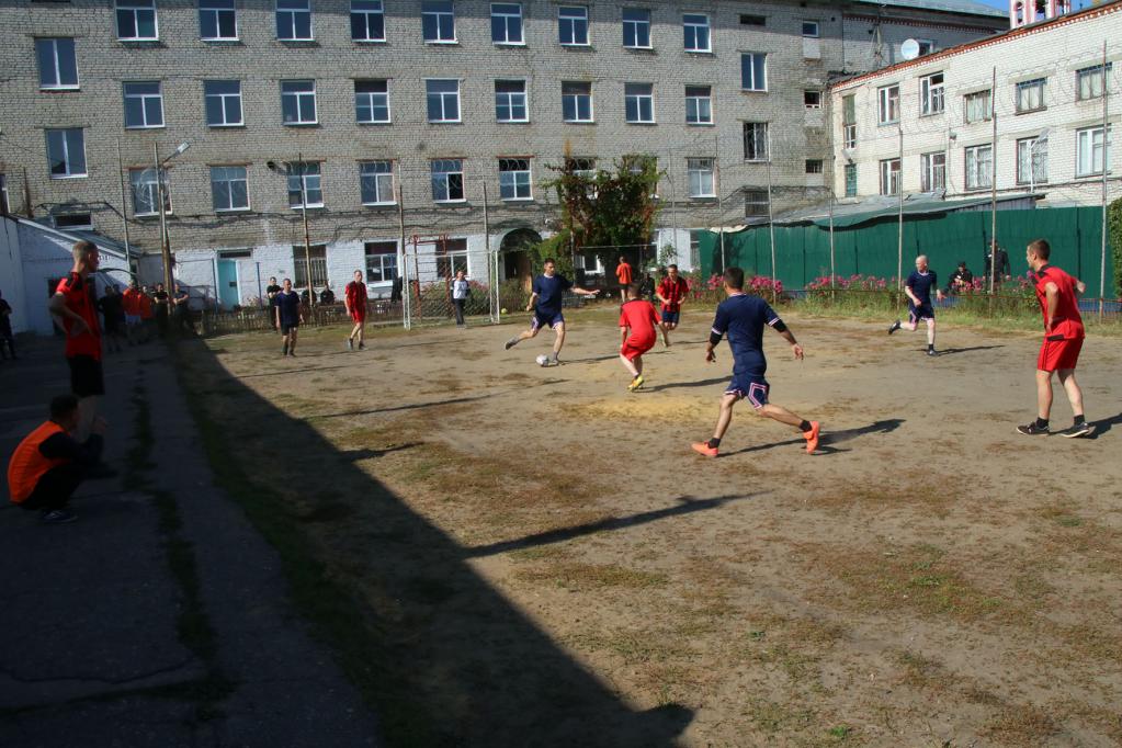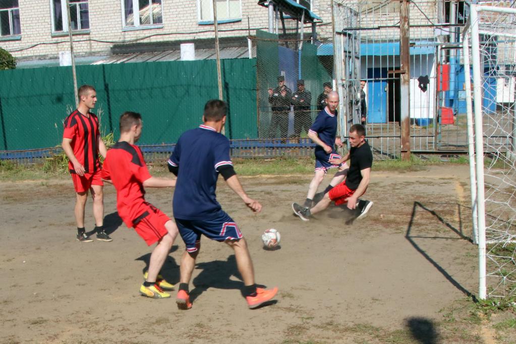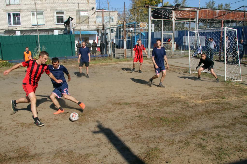 Принимала соревнования исправительная колония № 3. Само поле было не в идеальном состоянии, но хозяева обновили на нём разметку и починили сетку на воротах.