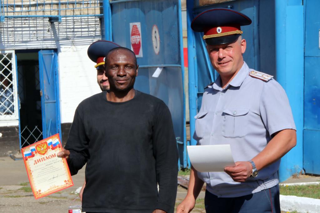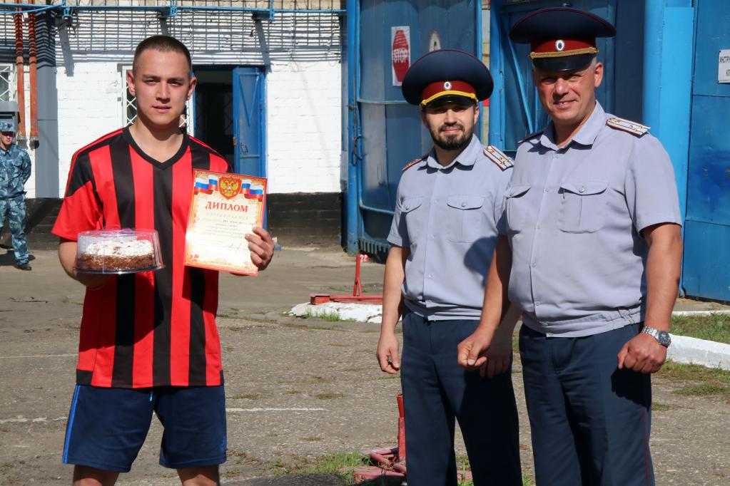 Заместитель начальника Управления исполнения наказаний Евгений Швецов вручил участникам соревнований дипломы, а победителям ещё и сладкий приз.