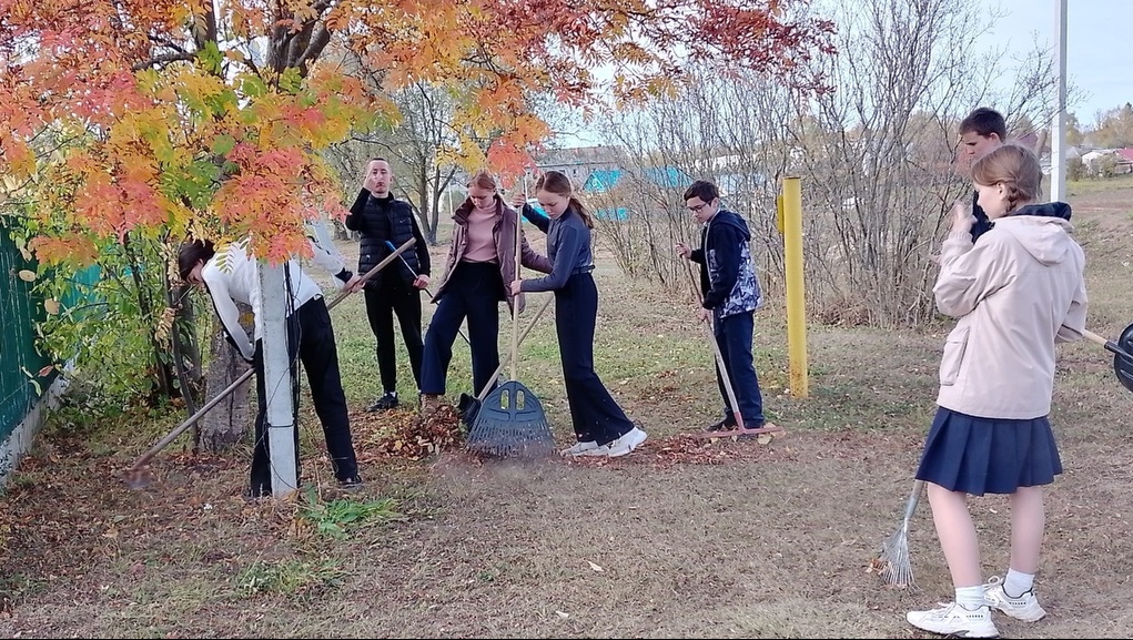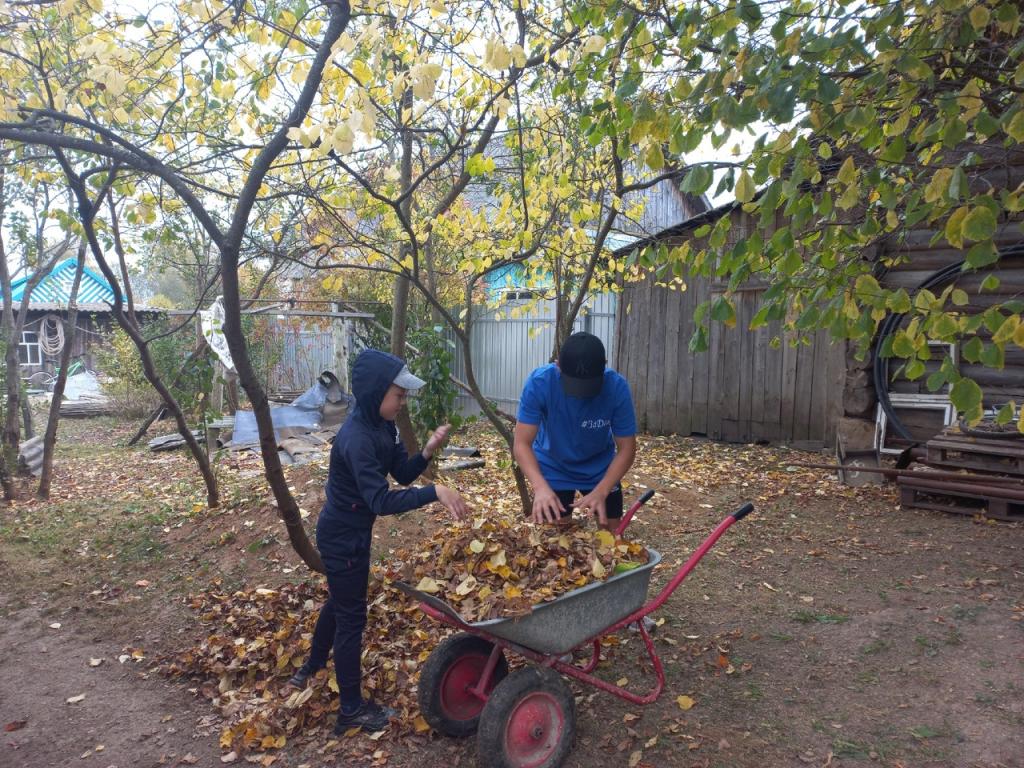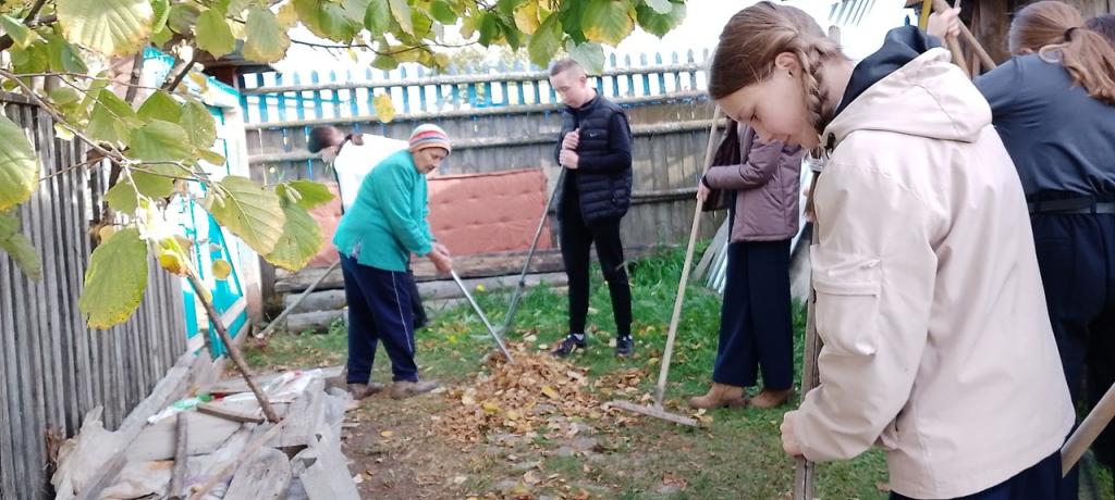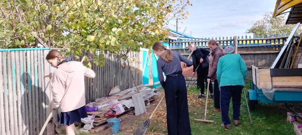 Команда добровольцев кукнурской школы подхватила эстафету и помогла ветерану педагогического труда З. Н. Алексееву в уборке территории.