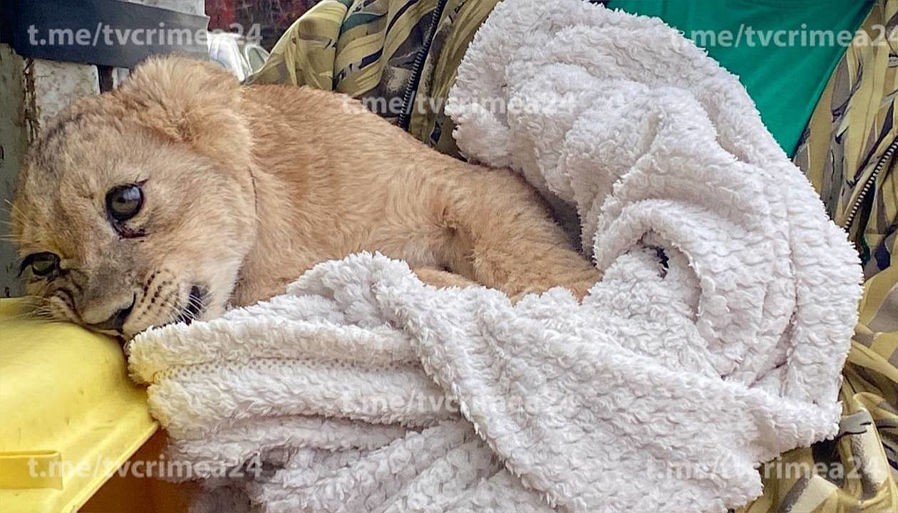 Истощённого львёнка привезли из Мелитополя в один из крымских зоопарков, сообщает «Крым 24».