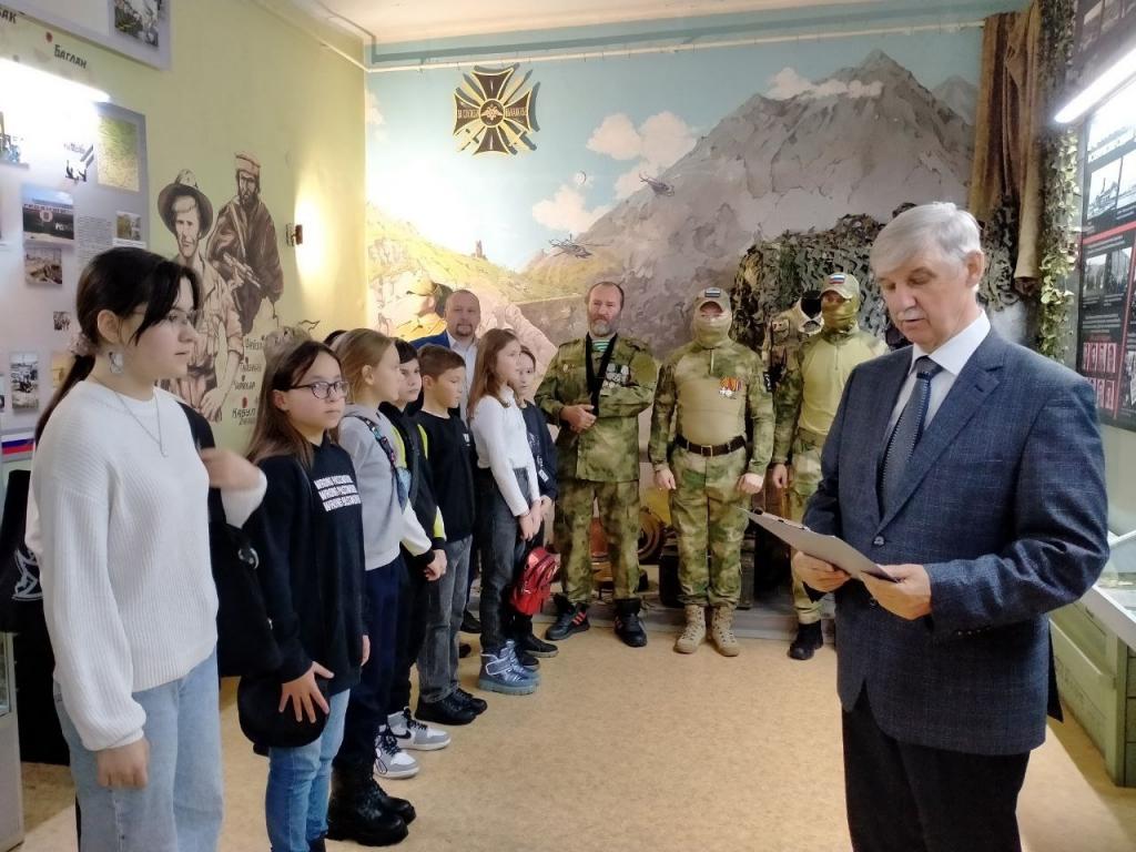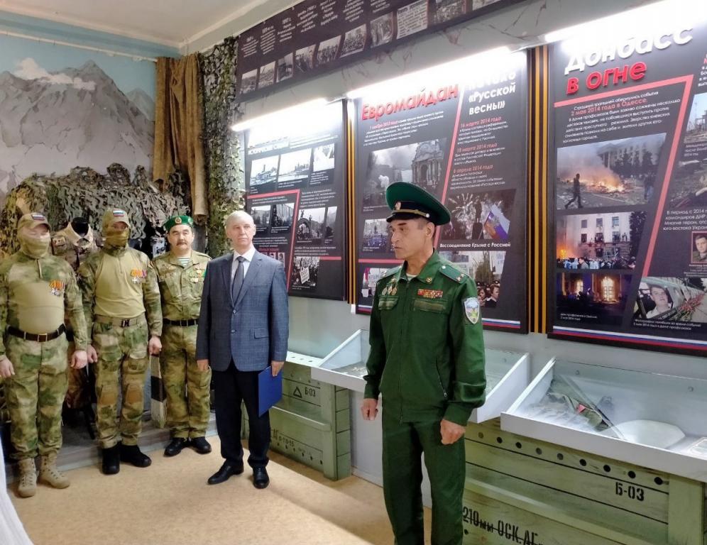 Приветствуя участников выставки, Евгений Маслов отметил важность просветительской работы музея для молодого поколения, поблагодарил бойцов за героизм и самоотверженность.