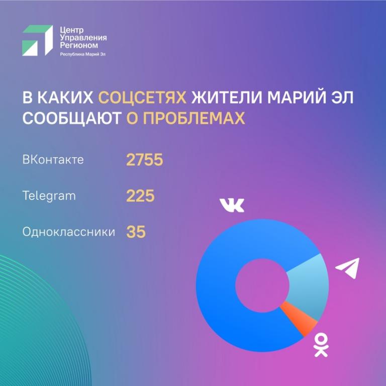 В подавляющем большинстве случаев жители республики для отправки обращений пользуются соцсетью «ВКонтакте» — 2775 обращений, второй по популярности Телеграм — 225, замыкает тройку лидеров «Одноклассники» — 35.