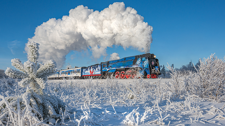 Основную часть пути поезд-резиденцию Деда Мороза ведёт современный тепловоз, для экономии времени. На подъезде к городам ведущим становится настоящий паровоз с угольной топкой. Каждый вагон состава украшен особенно, ведь это сказочный поезд, на котором путешествуют герои из команды главного волшебника страны.