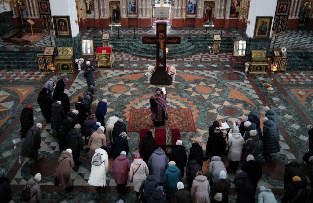 По благословению митрополита Йошкар-Олинского и Марийского Иоанна клирики храмов Йошкар-Олы и Медведевского благочиния с певчими своего храма совершают в Благовещенском соборе перед Крестом Господним молебны по установленному графику: