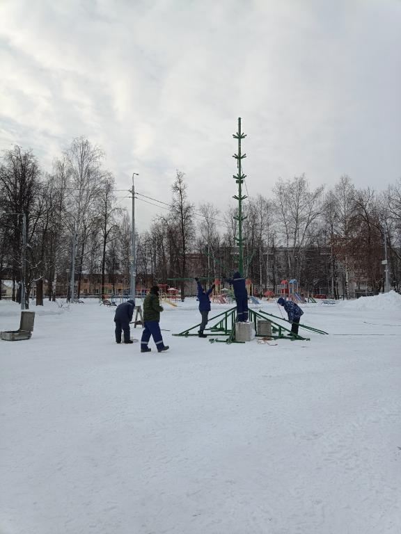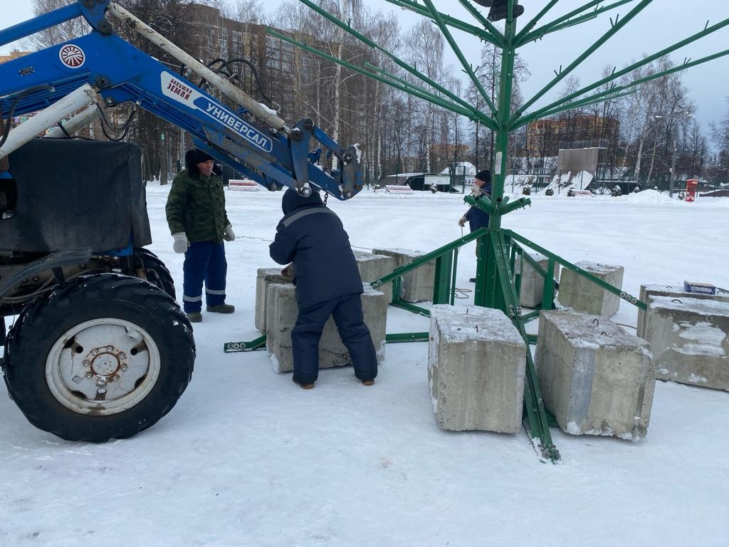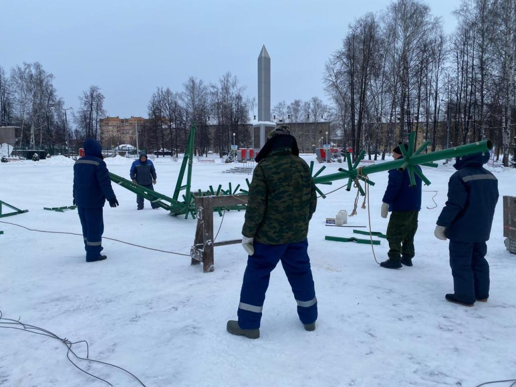 В Парке Победы в Йошкар-Оле ставят ёлку
